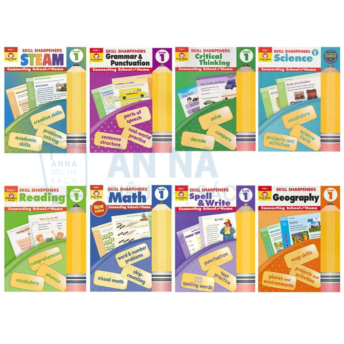 Sách Tiếng Anh Skill Sharpeners Grade 1 – Evan Moor Bộ 8 Cuốn Nhập Màu