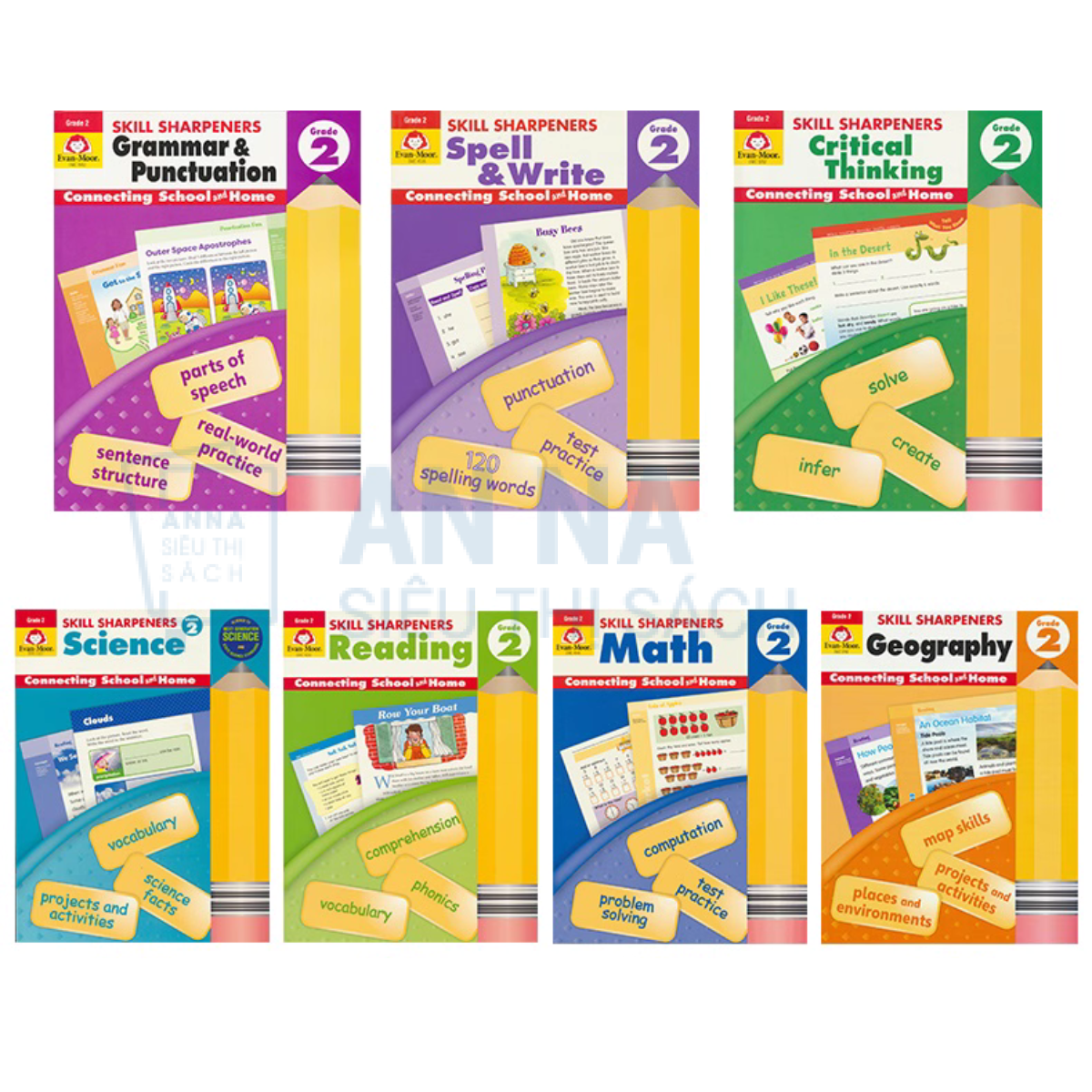 Sách Tiếng Anh Skill Sharpeners Grade 2 – Evan Moor Bộ 8 Cuốn Nhập Màu