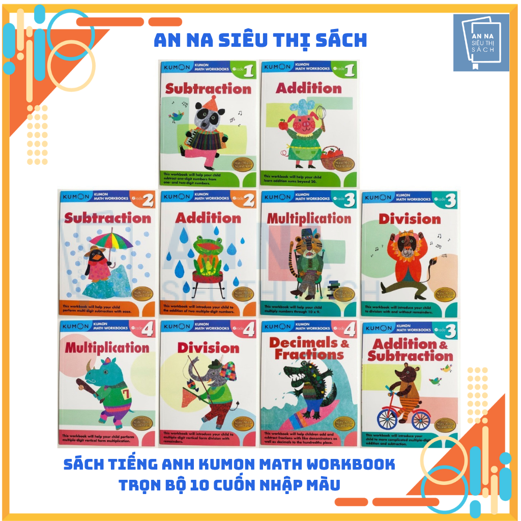 Sách tiếng anh Kumon math workbook nhập màu 10 quyển