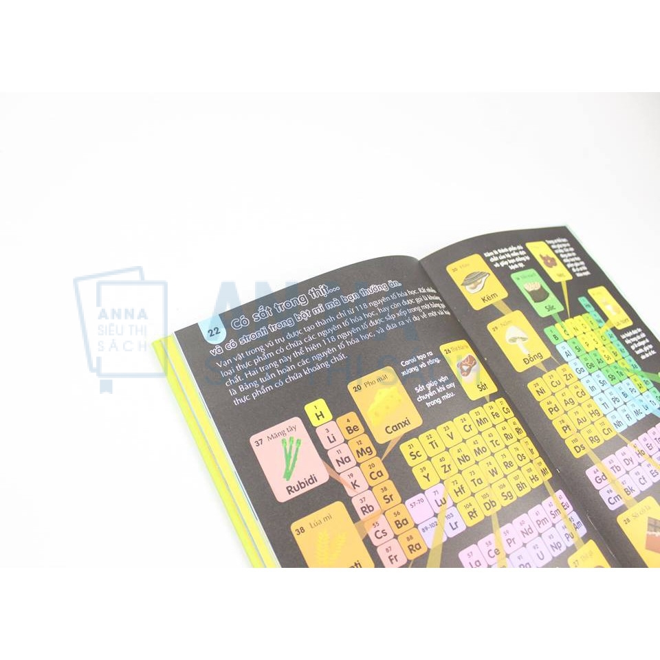 Cuốn sách được chia thành 4 chủ đề chính: Cơ thể, Khoa học, Vũ trụ và Thức ăn. Đây là những chủ đề quan trọng và thú vị đối với trẻ em, giúp chúng hiểu về cơ thể của mình, khoa học tự nhiên, vũ trụ và vai trò của thức ăn trong sự phát triển của chúng. Với các thông tin thú vị như bốn dấu hiệu sinh tồn nói cho bác sĩ biết chúng ta có khỏe không, sự cứng rắn của răng ngang với thép và sự độc đáo của cấu trúc cằm con người, cuốn sách giúp trẻ em khám phá và hiểu về những điều kỳ diệu và độc đáo của cơ thể con người. Bên cạnh đó, cuốn sách còn đề cập đến những sự thật thú vị khác như thời gian chúng ta dành để ngủ, khả năng nín thở lâu đến 20 phút, độ dài của các mạch máu trong cơ thể, và sự phát triển của đôi tai. Những thông tin này không chỉ giúp trẻ em hiểu về cơ thể mình, mà còn khơi dậy niềm yêu thích và tò mò đối với khoa học.